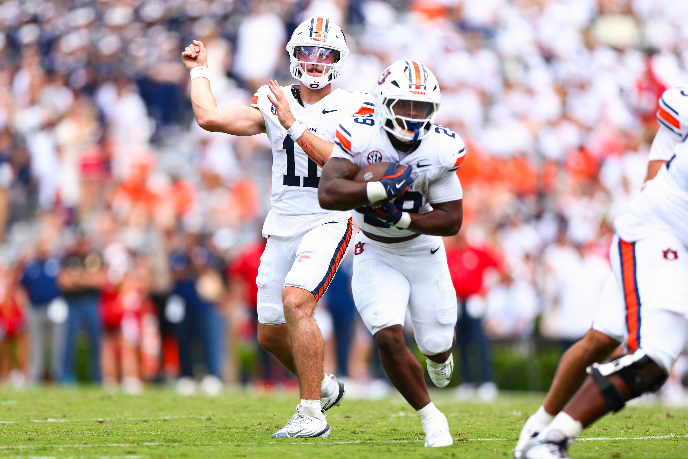AUBURN, AL - SEPTEMBER 13 - Auburn quarterback Jackson Arnold (11) during the game between the #24 Auburn Tigers and the South Alabama Jaguars at Jordan-Hare Stadium in Auburn, AL on Saturday, Sept. 13, 2025. Photo by Zach Bland/Auburn Tigers